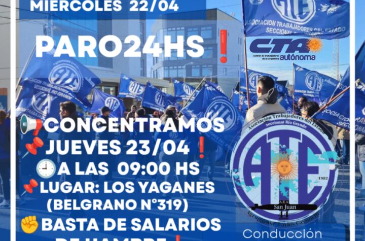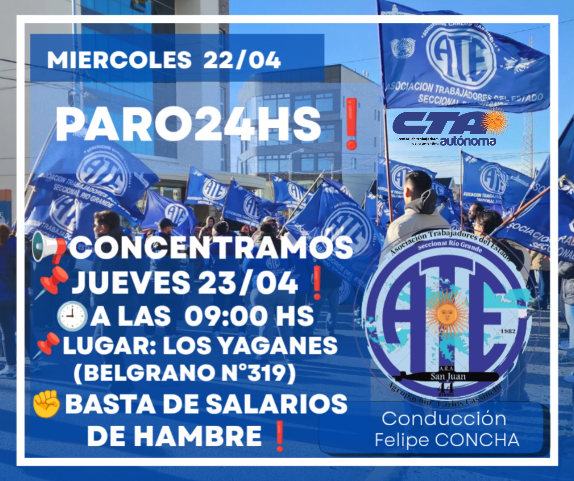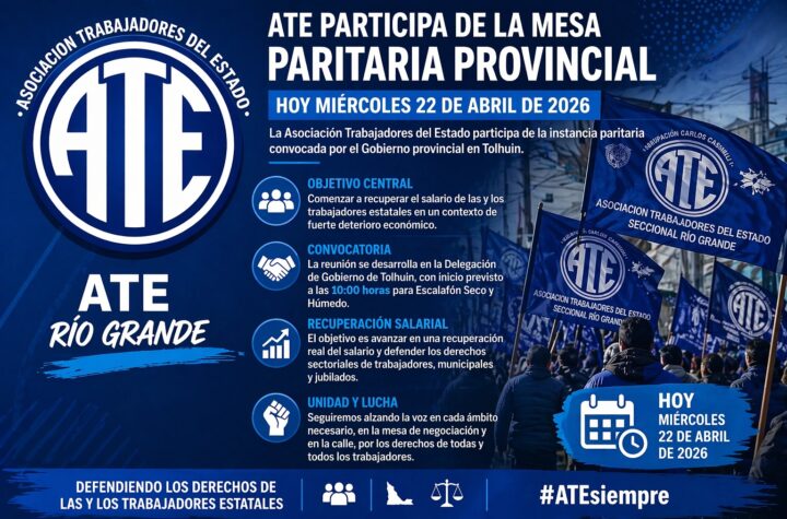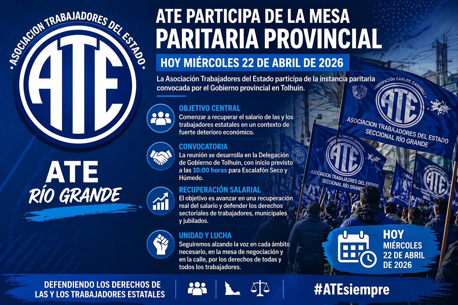 ATE Río Grande ATE participa este miércoles 22 de abril de la mesa paritaria provincial en Tolhuin La Asociación Trabajadores...
