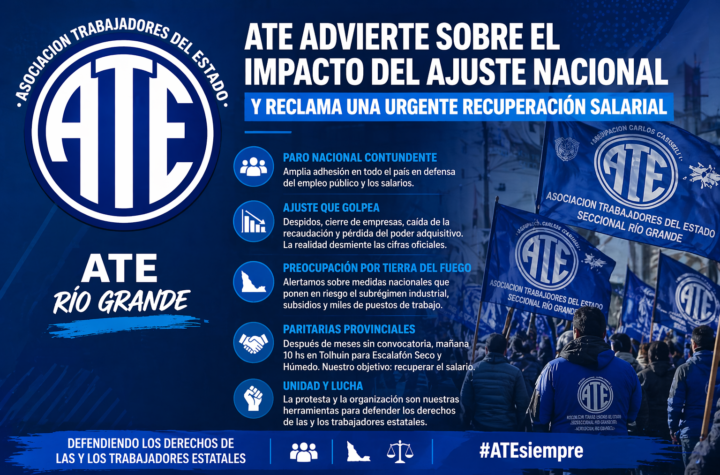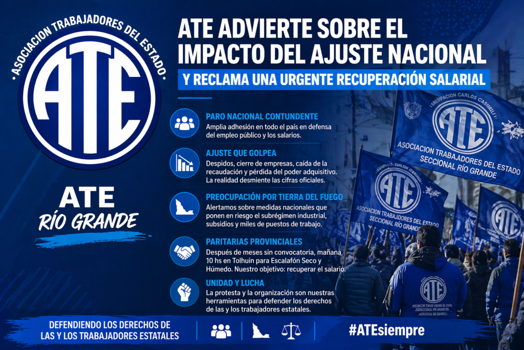 ATE RÍO GRANDE CONVOCA A PARO Y MOVILIZACIÓN EN TODA LA PROVINCIA